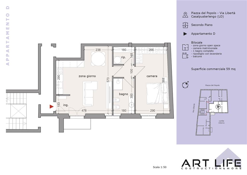 Proponiamo in vendita un bilocale composto da ingresso, soggiorno con angolo cottura, disimpegno, ripostiglio, bagno e camera da letto.